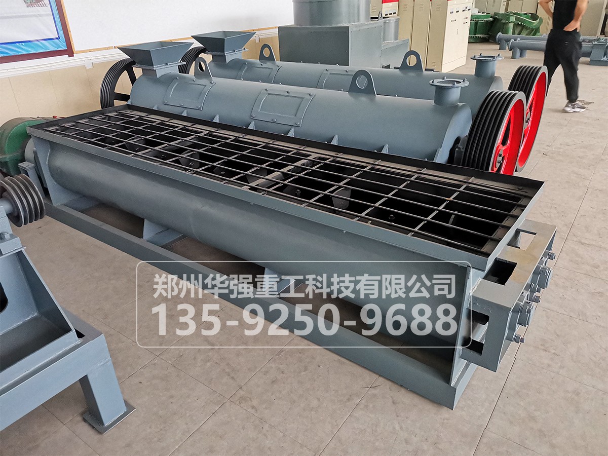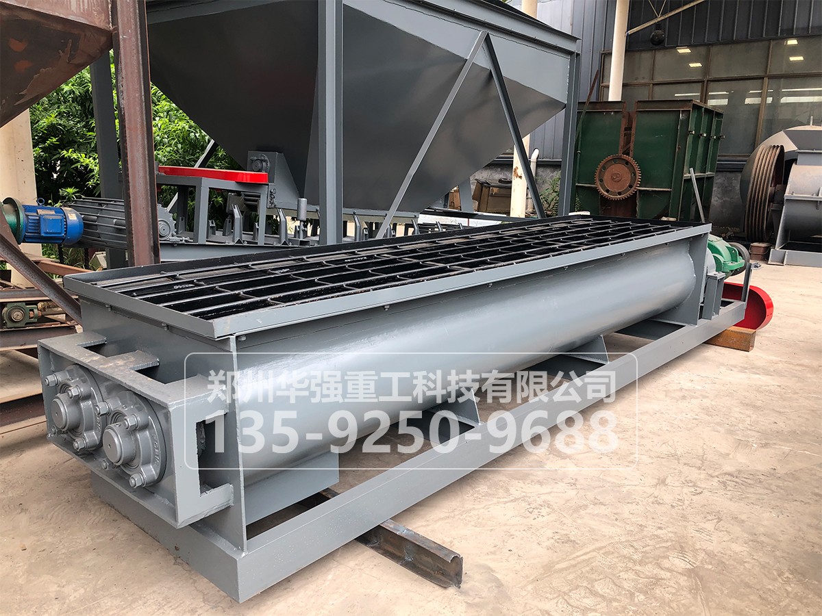 工作原理:當(dāng)干粉狀物料由給料機(jī)定量通過(guò)進(jìn)料口均勻進(jìn)入槽體后,動(dòng)力傳動(dòng)機(jī)械帶動(dòng)裝有多組葉片的螺旋形主軸轉(zhuǎn)動(dòng),通過(guò)對(duì)嚙合傳動(dòng)齒輪帶動(dòng)被動(dòng)螺旋軸與主軸作等速相對(duì)轉(zhuǎn)動(dòng),從而使物料被攪和和并推進(jìn)至槽體加濕段,在物料被推進(jìn)至加濕段后,加濕器自動(dòng)對(duì)物料進(jìn)行噴濕,進(jìn)而至槽體后攪拌段進(jìn)行充分?jǐn)嚭停?dāng)物料達(dá)到可控濕度后由出料口卸出,進(jìn)入下一道工序。