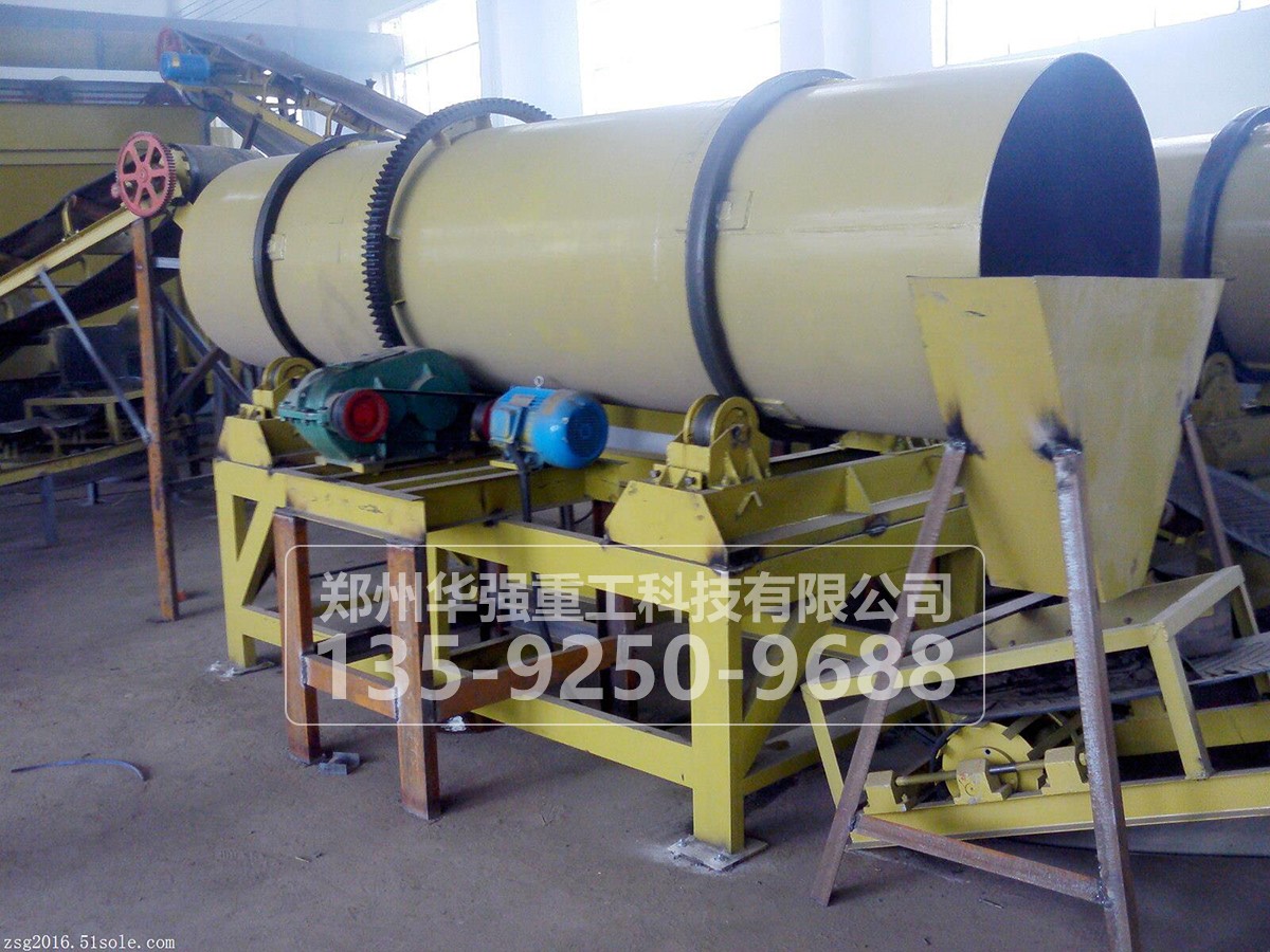 3.后處理:進一步對堆肥成品進行篩分,篩下物根據水分含量高低分別進行處理。篩下物圓盤造粒機造粒造粒后,送入華強重工有機肥專用烘干機,進行烘干,按比例添加各種添加物后攪拌混合后制成成品,進行分裝,入庫待售。篩上物返回粉碎工序進行回用。